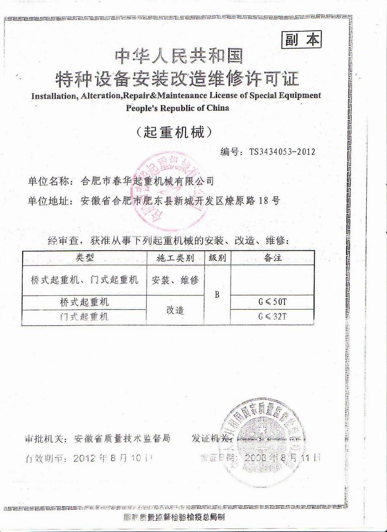 版權所有 © 合肥市春華起重機械有限公司 地址:合肥市肥東新城開發(fā)區(qū)燎原南路18號 聯系電話:0551-67709358 手機:13855153944